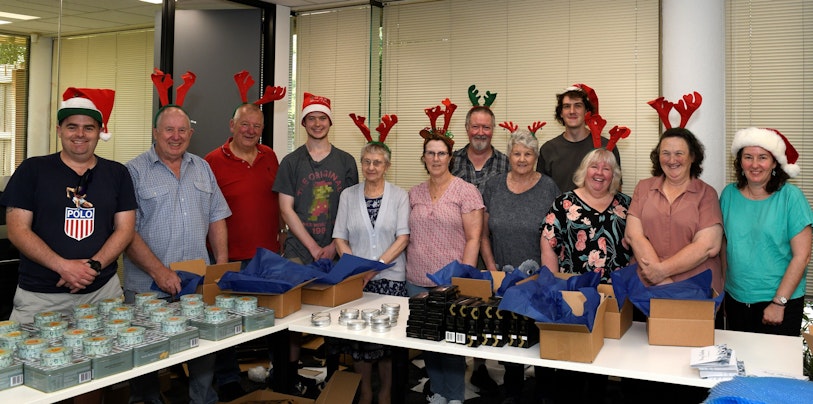 BankVic and other volunteers packing hampers for the 2023 VPL Children's Christmas Appeal